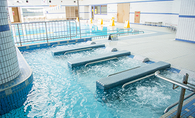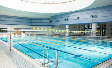 25mの温水プール6コース、幼児プール、リラクゼーションプールを備えます。プール床が昇降するコースもあり、子どもから高齢者の方まで幅広い年代の方がそれぞれのライフスタイルに合った健康づくりの場として有効にご利用できます。