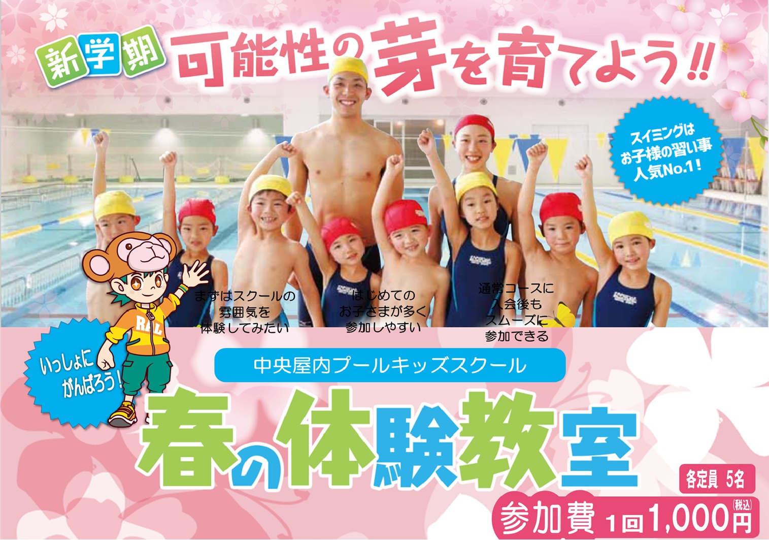 ※3月1日(火)~4月30日(木)迄お好きな曜日に週1回本スクールに体験が可能
