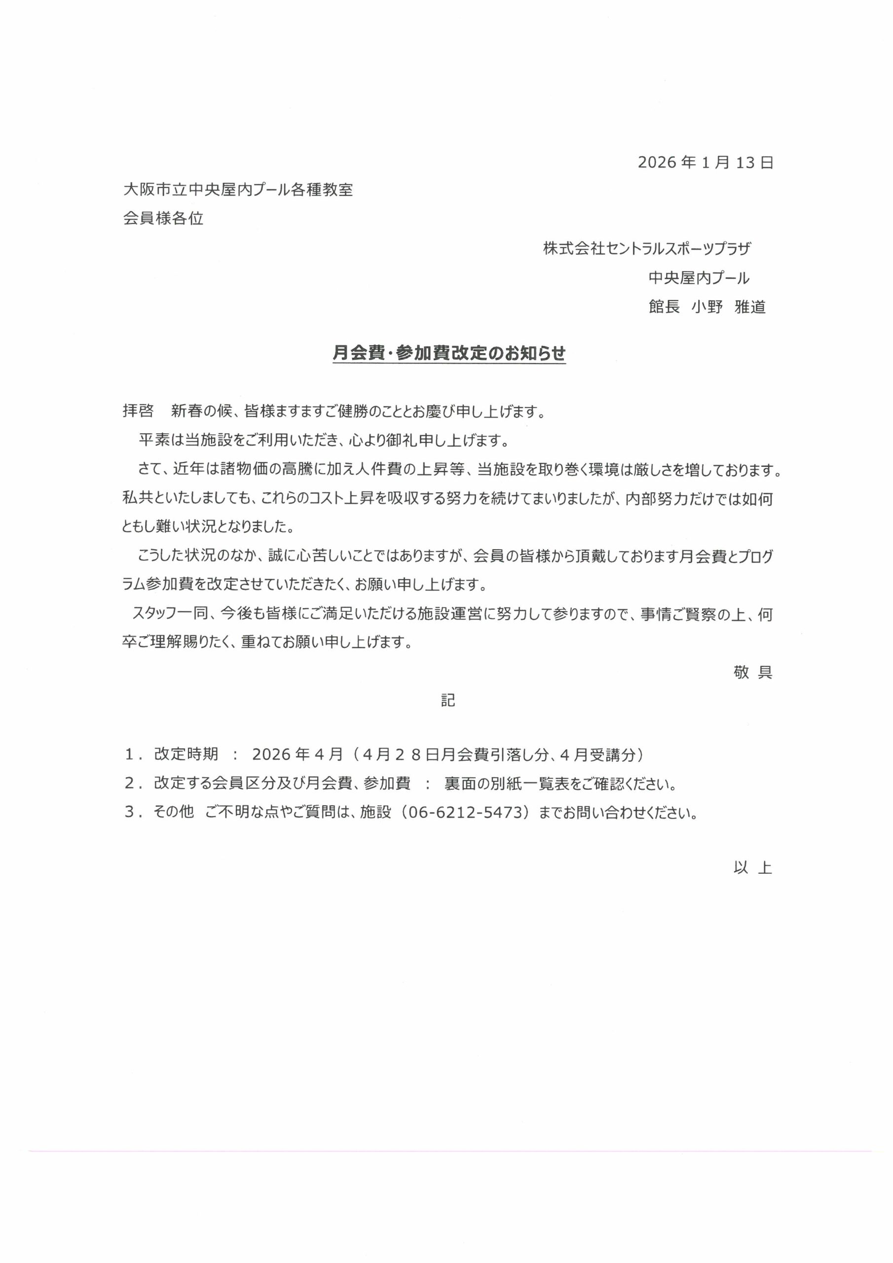 月会費・参加費改定のお知らせ