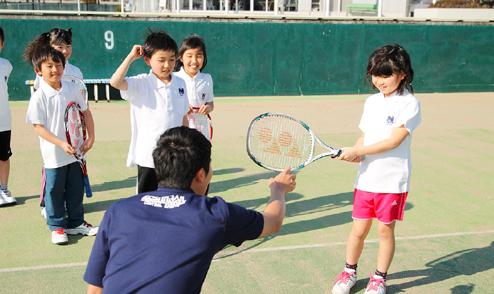 セントラルスポーツのテニススクールはテニスの技術の上達ははもちろんのこと、テニスを通じて子供たちの健全な心身の成長に貢献することをモットーとしています。また、集団行動の中で必要なマナーを身につけながら成長していけるように配慮しております。