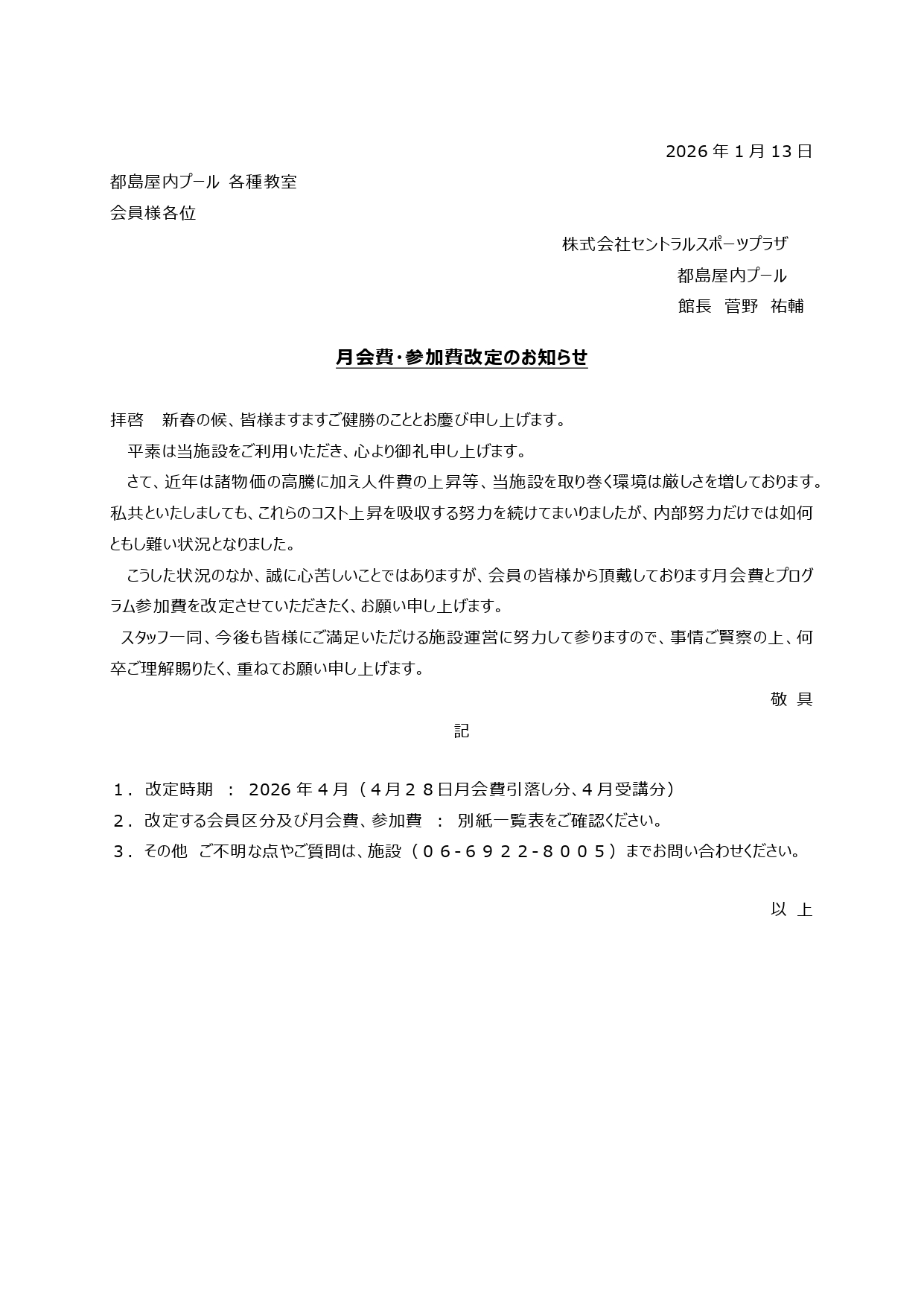 【重要】月会費・利用料改訂のお知らせ(2026年4月より)