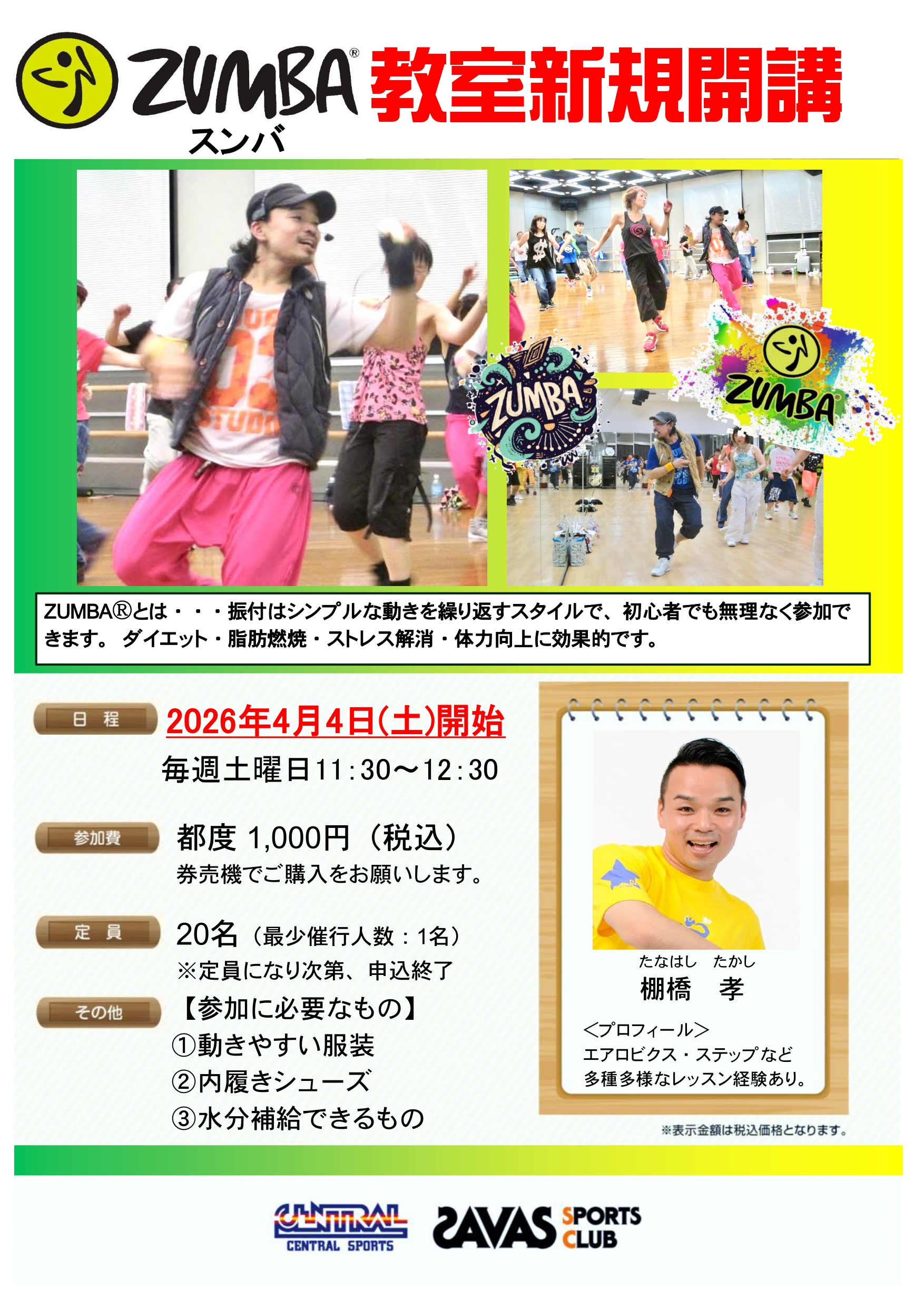 【4月スタート】土曜日ZUMBAⓇ教室開講!!