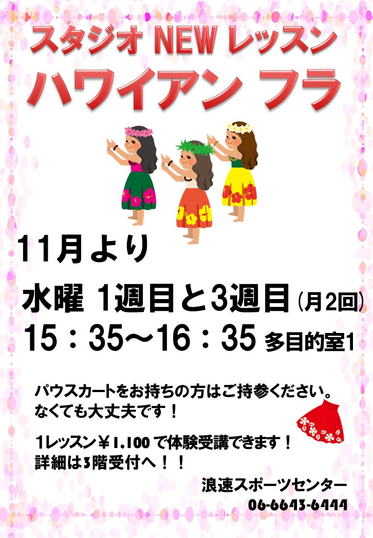 【スタジオ】NEW レッスン『ハワイアン フラ』
