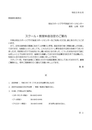 スクール・教室料金改定のご案内について