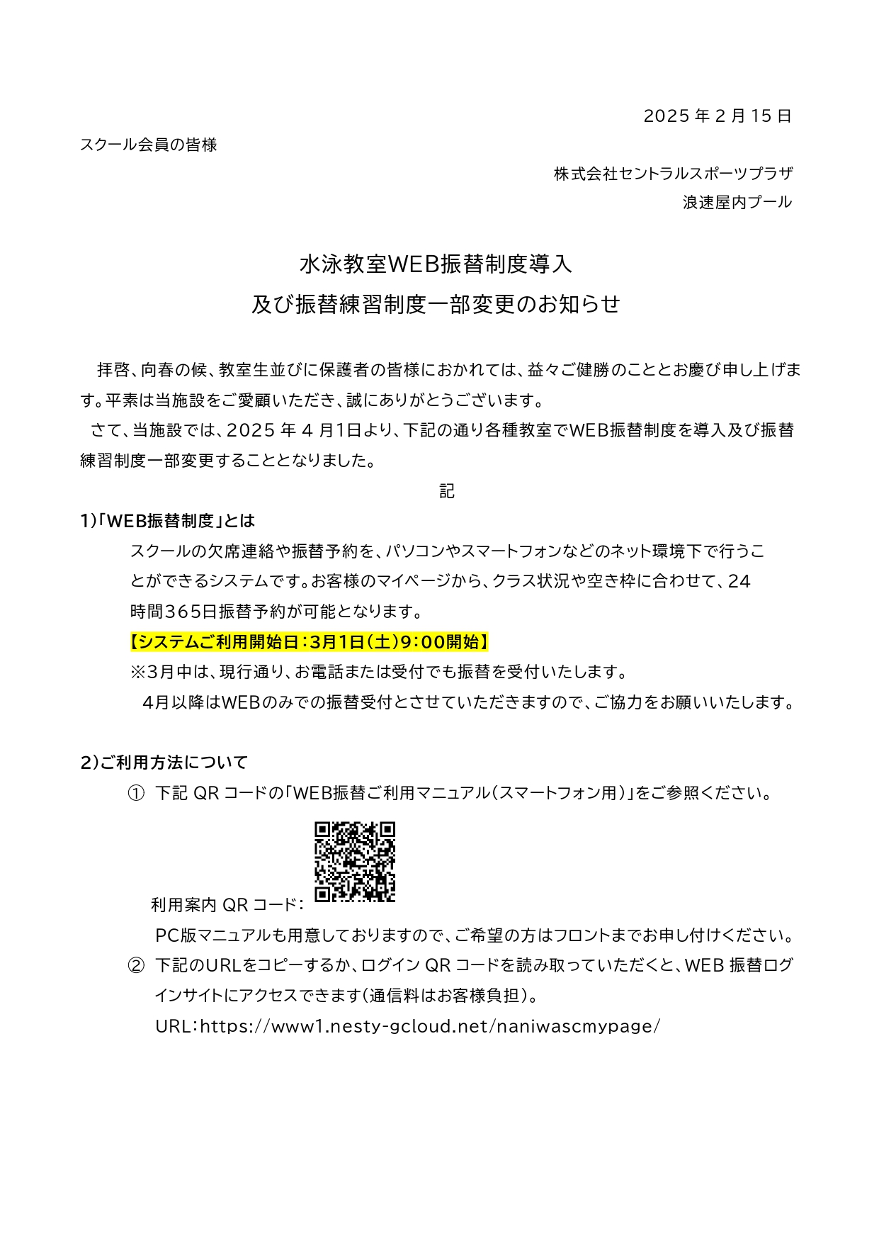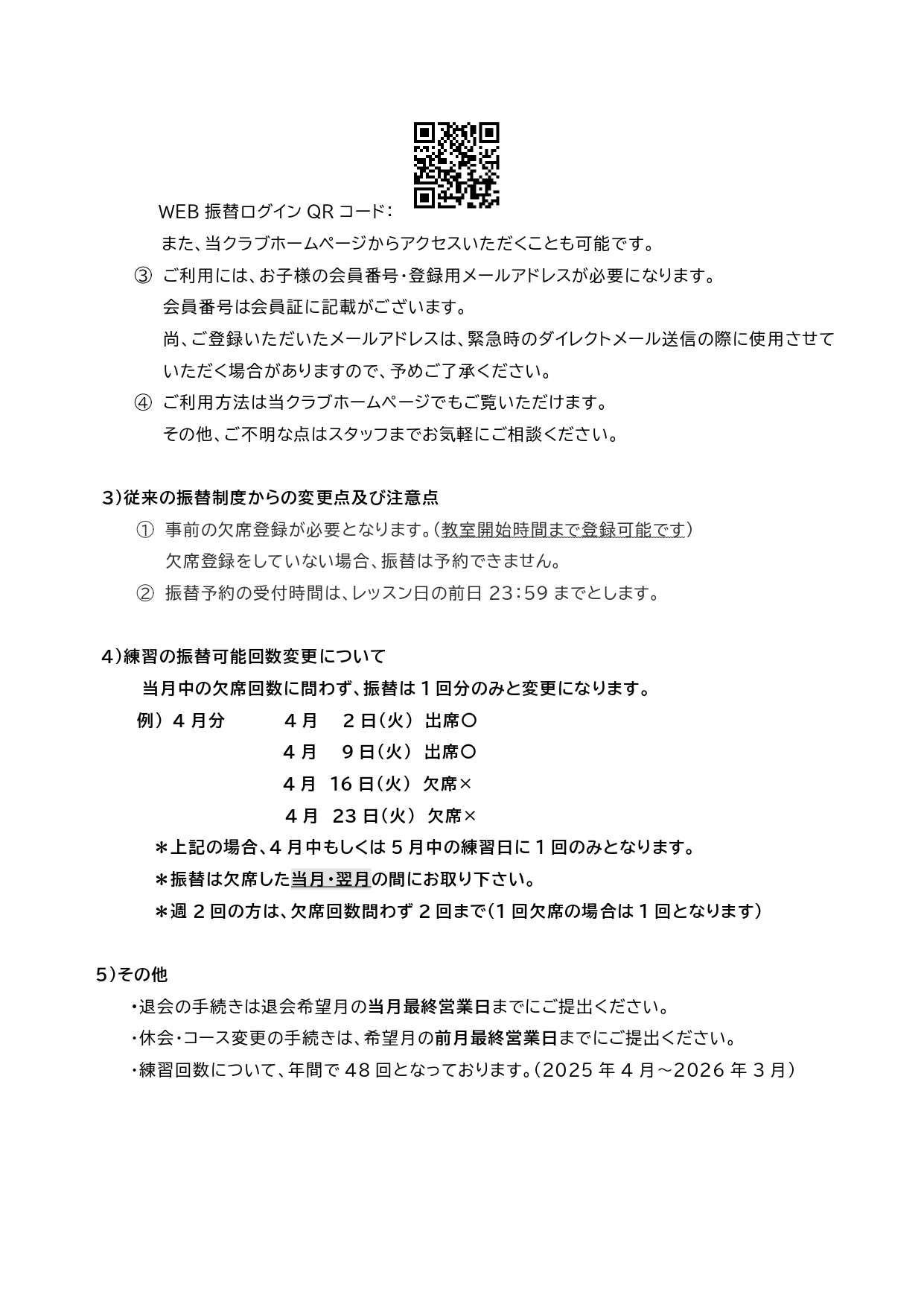 重要【スイミングスクール】WEB振替制度導入及び振替練習制度一部変更のお知らせ