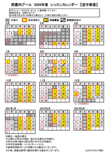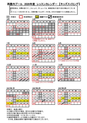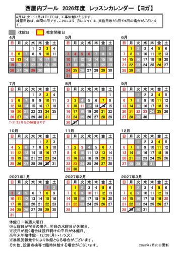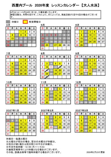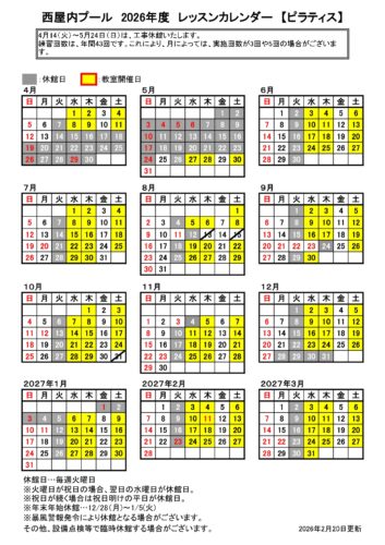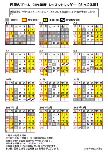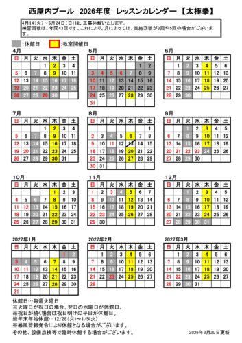 2026年度各教室カレンダー